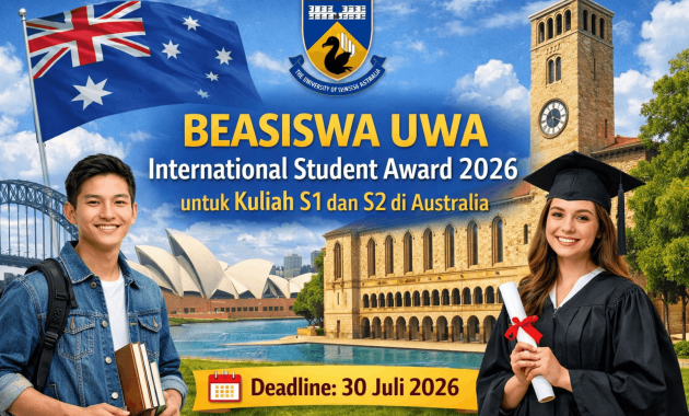 Beasiswa UWA International Student Award 2026 untuk Kuliah S1 dan S2 di Australia Kabar baik nih buat kamu yang sedang mencari peluang beasiswa kuliah di luar negeri! Saat ini ada kesempatan menarik untuk melanjutkan studi di Australia, tepatnya di The University of Western Australia (UWA), melalui program UWA International Student… Read more“Beasiswa UWA International Student Award 2026 untuk Kuliah S1 dan S2 di Australia”