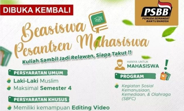 Beasiswa Putra/Putri Guru untuk Kuliah S1 di Universitas Prasetiya Mulya Universitas Prasetiya Mulya saat ini sedang membuka pendaftaran beasiswa kepada para calon mahasiswa baru 2023. Beasiswa Putra/Putri Guru ini merupakan program beasiswa yang disediakan untuk Putra/Putri kandung Guru SMA/MAN di seluruh wilayah Indonesia. Jadi, bagi kamu yang memiliki orang tua… Read more“Beasiswa Putra/Putri Guru untuk Kuliah S1 di Universitas Prasetiya Mulya”