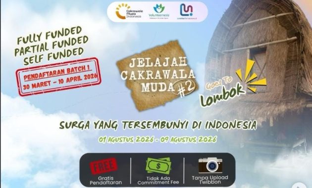 Beasiswa Volunteering Djelajah Pulau Rempah untuk Umum YATC atau Yayasan Andre Tjipta Cendekia kembali membuka kesempatan volunteering ke Banda Neira. Bertajuk Djelajah Pulau Rempah, program ini mengajak kamu untuk mengikuti berbagai kegiatan yang akan membantu masyarakat, tepatnya di Negeri Administratif Water di kecamatan Kepulauan Banda, Kabupaten Maluku Tengah, provinsi Maluku…. Read more“Beasiswa Volunteering Djelajah Pulau Rempah untuk Umum”