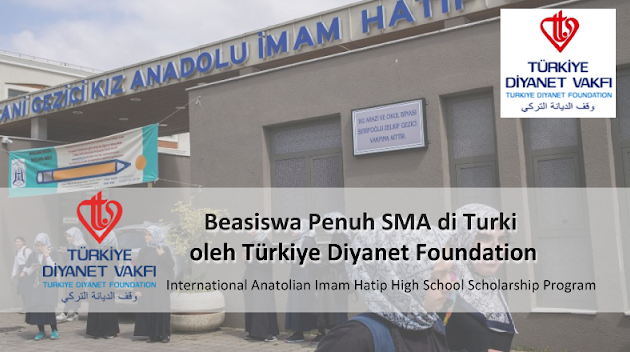 Beasiswa Imam Hatip TDV (International Anatolian Imam Hatip High School Scholarship Program) adalah sebuah program yang dibuat oleh pemerintah Turki untuk menarik siswa-siswi internasional agar melanjutkan studi tingkat SMA di Turki. Program beasiswa ini merupakan beasiswa fully funded dimana seluruh pembiayaan mulai dari biaya studi, akomodasi, transportasi, dll akan dibiayai secara penuh oleh Türkiye Diyanet Vakfı (TDV) dan Kementerian Pendidikan Turki. Untuk info beasiswa lainnya, click disini.