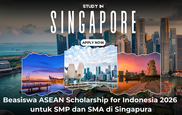 ASEAN Scholarship for Indonesia merupakan program beasiswa penuh dari Kementerian Pendidikan Singapura (MOE) bagi pelajar Indonesia yang ingin melanjutkan pendidikan di sekolah menengah (secondary school) di Singapura. Program ini bertujuan memberikan kesempatan bagi siswa berprestasi untuk mengembangkan potensi akademik, kepemimpinan, dan keterampilan hidup di lingkungan multikultural. Penerima beasiswa juga diharapkan menjadi duta muda yang mempererat hubungan baik antara Indonesia dan Singapura. Jika kamu tertarik, yuk simak info selengkapnya di bawah ini. Untuk info beasiswa lain, click di sini.
