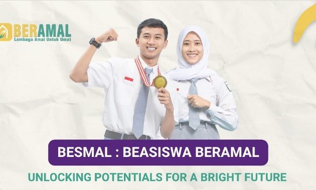 Besmal atau Beasiswa Beramal adalah program beasiswa khusus untuk pelajar SMA atau sederajat. Tujuannya adalah bantuan berupa dana tunjangan pendidikan kepada pelajar yang berkeinginan untuk melanjutkan sekolah namun terhambat oleh keterbatasan ekonomi. Sasaran beasiswa ini adalah pelajar berdomisili di wilayah Bandung Raya. Nah, bagi kamu yang berminat, berikut informasinya lebih lanjut. Untuk info beasiswa lain, silakan click disini.