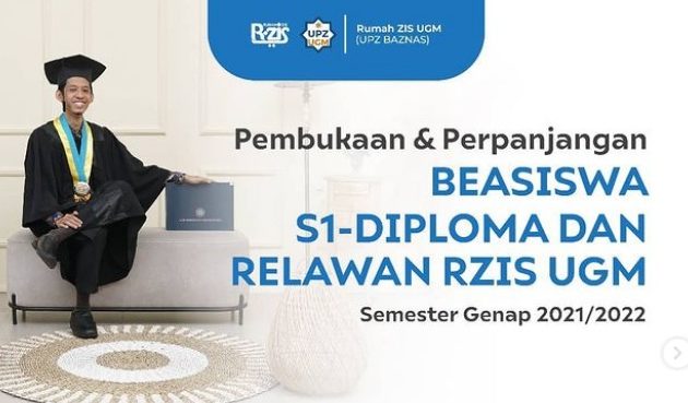 Ada kabar baik untuk mahasiswa UGM. Pasalnya, Rumah Zakat Infaq Shodaqoh atau Rumag ZIS sedang mengadakan beasiswa. Beasiswa ini ditujukan untuk mahasiswa jenjang D3, D4, dan S1. Program ini pun hanya terbuka untuk mahasiswa UGM. Melalui program beasiswa ini, kamu tidak hanya akan mendapat beasiswa, namun juga berkesempatan mengikuti kegiatan menarik. Bagi mahasiswa UGM yang tertarik, berikut informasinya lebih lanjut. Untuk info beasiswa lain, silahkan click disini.