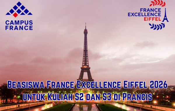 Satu lagi nih program beasiswa ke luar negeri yang patut kamu pertimbangkan, yakni beasiswa France Excellence Eiffel. Program beasiswa ini dibuka untuk para pendaftar internasional, termasuk asal Indonesia. Bagi kamu yang tertarik untuk melanjutkan studi S2 maupun S3 di Prancis, maka program beasiswa ini bisa menjadi pilihan yang tepat untukmu. Untuk info selengkapnya, silakan simak di bawah ini. Untuk info beasiswa lain, click di sini.