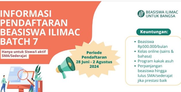 Beasiswa Ilimac Batch 7 untuk Siswa SMA atau Sederajat