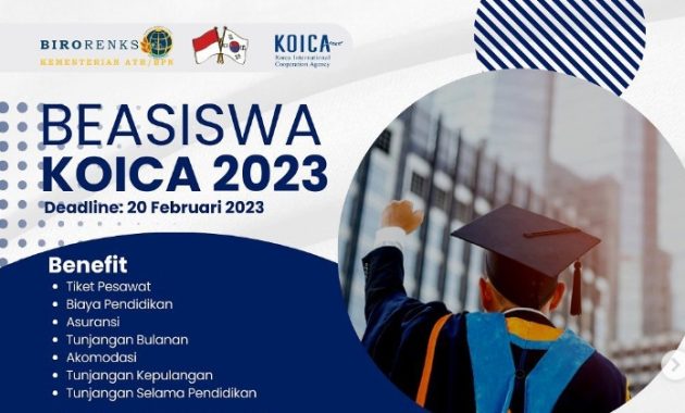 Kementerian Agraria dan Tata Ruang, bekerjasama dengan The Korea International Cooperation Agency (KOICA) membuka kesempatan beasiswa bagi kamu yang ingin berkuliah di Korea jenjang Master. Untuk bisa mendaftar, kamu harus memiliki pengalaman kerja minimal 2 tahun di bidang yang kamu pilih. Untuk info lebih lanjutnya, silakan baca informasinya berikut ini. Untuk info beasiswa lain, silakan click disini.