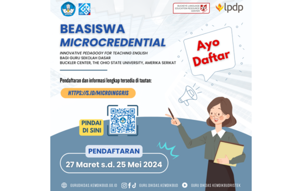 Kabar baik nih untuk yang berprofesi sebagai guru, khususnya di jenjang pendidikan SD/sederajat. Saat ini Kemdikbud dan LPDP kembali berkolaborasi untuk menggelar program beasiswa microcredential di bidang bahasa Inggris. Program beasiswa ini merupakan program beasiswa non-degree atau tanpa gelar yang bertujuan untuk meningkatkan kemampuan berbahasa Inggris guru SD. Program beasiswa ini akan diselenggarakan di Ohio State University Amerika Serikat secara online. Jika kamu tertarik, yuk simak info selengkapnya di bawah ini. Untuk info beasiswa lain, click di sini.