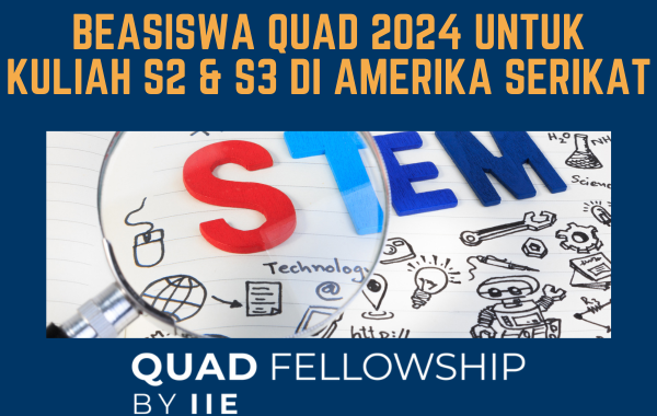 Satu lagi nih program beasiswa yang patut kamu pertimbangkan, yakni beasiswa Quad. Program beasiswa ini diinisiasi oleh pemerintah Australia, India, Jepang, dan Amerika Serikat. Program beasiswa ini menawarkan kesempatan untuk kuliah di universitas-universitas di Amerika Serikat pada jenjang S2 maupun S3. Bidang fokus dari program beasiswa ini adalah STEM atau Science, Technology, Engineering, and Mathematics. Jika kamu tertarik untuk mengikuti program beasiswa ini, yuk simak dulu info selengkapnya di bawah ini. Untuk info beasiswa lain, click di sini.