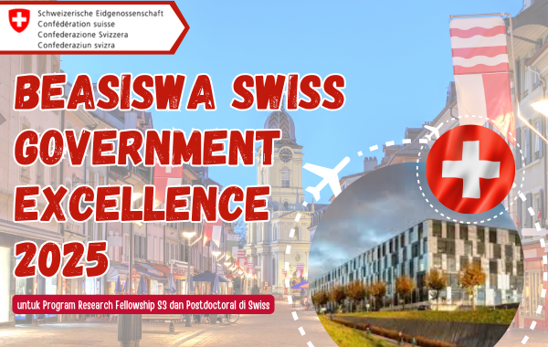 Kabar baik nih bagi kamu yang berencana untuk melanjutkan studi di luar negeri, khususnya di Swiss. Saat ini pemerintah Swiss kembali membuka pendaftaran beasiswa Swiss Government Excellence. Program beasiswa ini tersedia untuk program research fellowship, S3, serta postdoctoral. Jika kamu tertarik, yuk simak info selengkapnya di bawah ini. Untuk info beasiswa lain, click di sini.
