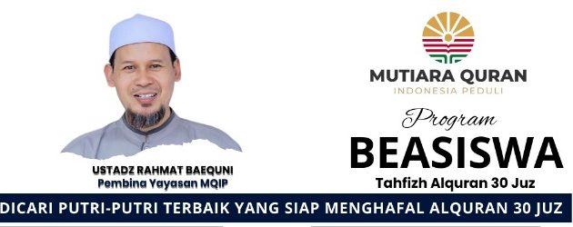 Beasiswa Tahfizd Al-Quran 30 Juz merupakan program yang diadakan oleh Mutiara Quran Indonesia Peduli. Program ini mencari pemuda dan pemudi terbaik Indonesia yang siap menghafal 30 Juz. Beasiswa Tahfizd Al-Quran akan berlangsung selama 2 tahun. Kamu akan mendapatkan 1 tahun program pendidikan dan 1 tahun program pengabdian. Jika kamu berminat, berikut informasinya lebih lanjut. Untuk info beasiswa lain, silakan click disini.