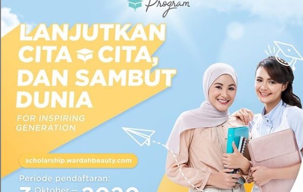 Wardah merupakan salah satu brand kecantikan ternama Indonesia yang dinaungi oleh PT. Paragon Technology and Innovation. Perusahaan tersebut memilik visi memberikan manfaat mendukung kemajuan pendidikan Indonesia. Perwujudan dari hal tersebut adalah dengan membuka kesempatan beasiswa yang konsisten diadakan bertahun-tahun. Bertepatan dengan memperingati Wardah 25 tahun, diluncurkan program beasiswa baru dengan nama ‘Wardah Scholarship Program’. Program ini ditujukan kepada 100 mahasiswi berprestasi dan/atau berasal dari keluarga kurang mampu. Untuk lebih jelasnya lagi, berikut keterangan lebih lanjut terkait Wardah Scholarship Program. Untuk info beasiswa lain, silahkan click disini.