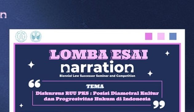 Lomba esai Narration merupakan program yang diadakan oleh Kelmpok Studi Penelitian (KSP) Principium. Principium berasal dari fakultas hukum Universitas Sebelas Maret. KSP Principium menjadi penyedia ruang diskusi untuk memberikan pemahaman bagi masyarakat terkait isu hukum, salah satunya dengan mengadakan lomba esai. Lomba esai kali ini akan berfokus pada hukum seputar kekerasan seksual yang ada di Indonesia dengan tema “Diskursus RUU PKS: Posisi Diametral Kultur dan Progresivitas Hukum di Indonesia”. Peserta yang dicari adalah mahasiswa aktif PTS maupun PTN Indonesia. Jika kamu tertarik, berikut penjelasan lebih lanjut terkait lomba esai narration KSP Principium. Untuk info lomba lain, silahkan click disini.